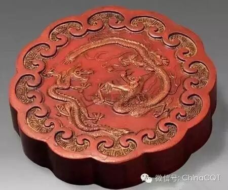 下图是乾隆时期的朱砂漆盒,上面雕刻了年年有余的图案。